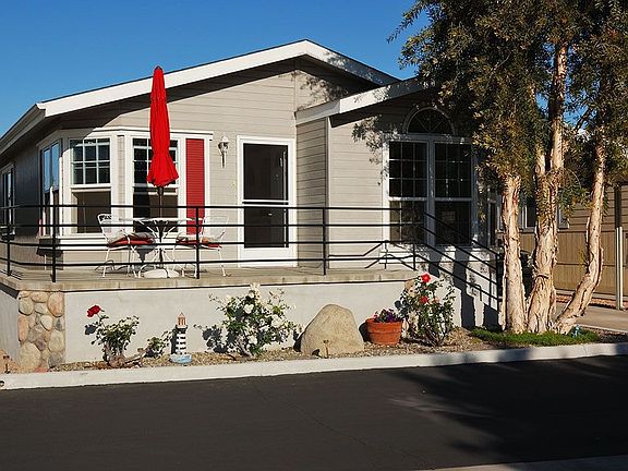 3 bed 2 bath aprox 1500 sq ft, Nice open and great kitchen, in one of the most sought after spots in the park...Looking towards the park and right across from the pool. The deck is one of the largest in the park and is great for entertaining your friends in the beautiful climate of Orange County. That’s why we love it here so much! You have access to swimming, playing pool, and game room, Also you can use the parlor in the big house for celebrations. The gardens are gorgeous surrounding the park with lots of parking. This home comes with an extra long carport and a work/storage shed to match the home, water softener and nice appliances, charming in and out!!! (Freeway close 57) This is a well kept park and very quiet but fun! You can grow your own garden. Dogs allowed under 25lbs max of two. Inside Laundry, Moen Shower heads,Kitchen is nice and open. Best restaurants near by, close to old town shops and food.
