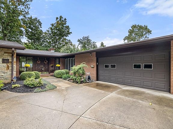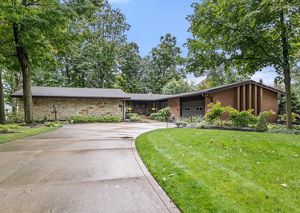 Stunning California style ranch home perfect for entertaining! Meticulously maintained this home exudes quality & the utmost of care since it was built. Open concept floor plan featuring walls of windows in every room! Oversized great room w/ cathedral ceilings, hardwood floors & a gas log fireplace wall. Inviting & updated kitchen with new quartz Calcutta countertops & a center island workspace open to the family room w/ second fireplace & hardwood floors. Spacious dining room w/ views of the gorgeous backyard w/ unique trees & shrubbery. Main floor master suite with double vanity and a recently tiled walk-in shower. Main floor laundry and storage galore in the lower level. Spotless clean!