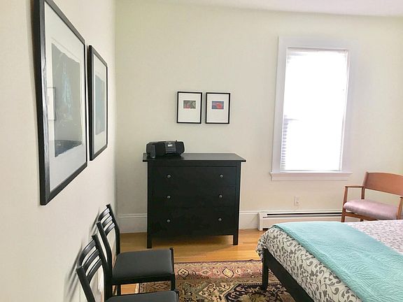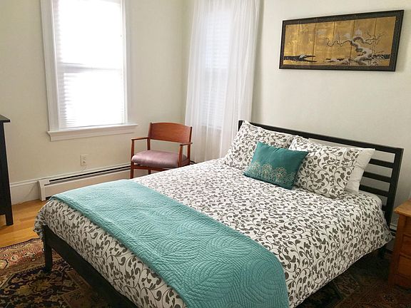 Beautiful, first floor apartment on a quiet street on the East Side of Providence (near Nathan Bishop Middle School). Two bedrooms, one and a half baths, living room, sun room, dining room, kitchen with eating nook, private porch, laundry in unit, central air. Separate front door. One garage spot for parking. The entire house was gutted and remodeled in 2008 so kitchens, bathrooms, plumbing, electrical, and windows are all modern. Hardwood floors throughout. The apartment is furnished as shown in the photos. Sorry, no smoking and no candles. 1 year or 6 month lease, your choice. After that, month to month.
