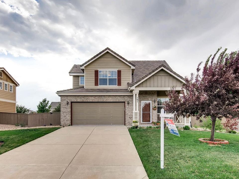 Lovely home w/ valuable updates & huge backyard is perfect size for smaller family. Friendly front porch welcomes you home. Living room has vaulted ceiling & new laminate flooring throughout main floor. Pretty kitchen w/ eating space has stainless appliances, Corian counters, tile backsplash & 42??? refinished cabinets. Family room has gas fireplace w/ new mantle & tile surround, inset shelving & built-in speakers. New roof, exterior paint, windows, sliding glass door & garage door opener in 2017. New carpet. All bedrooms have ceiling fans & all bathrooms have refinished vanities. Master suite has full bath w/ tile floor & oversized soaking tub. 2nd bedroom has walk-in closet and gets its own full bath. Sunny loft works as a home office or TV lounge or can easily convert into 3rd bedroom. Convenient upstairs laundry. Professionally landscaped backyard has patio plus lots of trees & garden space. Walk to elementary & middle schools. Minutes to hwy, Castlewood Canyon trail & outlet mall.