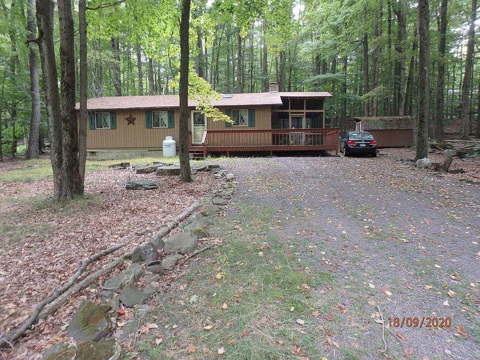 Looking for a ''Cabin in the Woods'? This is it. Wonderful cedar ranch featuring 3 bedrooms, 1 bath, nice brick fireplace in the living room, wood floors with cedar walls, skylights, screened porch, and includes the adjoining lot. Walking distance to the beach and lake. This makes for a fantastic residential, vacation, or rental home. Close to skiing, hunting, fishing, hiking, golf, Kalahari, and Lake Harmony.