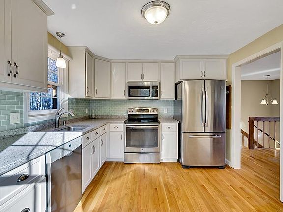 For more information visit 161Fay.com. Come see this lovingly maintained updated split-level home situated in an inviting neighborhood. This home is in move-in condition and features 3 generous sized bedrooms, 2 full baths, and glowing hardwood floors. The recently updated eat-in kitchen boasts granite counter tops, designer cabinets, and SS appliances, and steps out to a private deck overlooking lovely gardens. The large living room features hardwood floors, a beautiful fireplace with a wood stove insert, and large windows. The lower level has 1 bedroom, a full bath, and a designated laundry area. Enjoy the luxury of your own personal spa with a Nordic hot tub, heated tile floor, and lovely chandelier, or convert space back to a garage. This beautiful home is set back off the street offering lots of privacy, and is conveniently located close to schools, shopping, and transport.