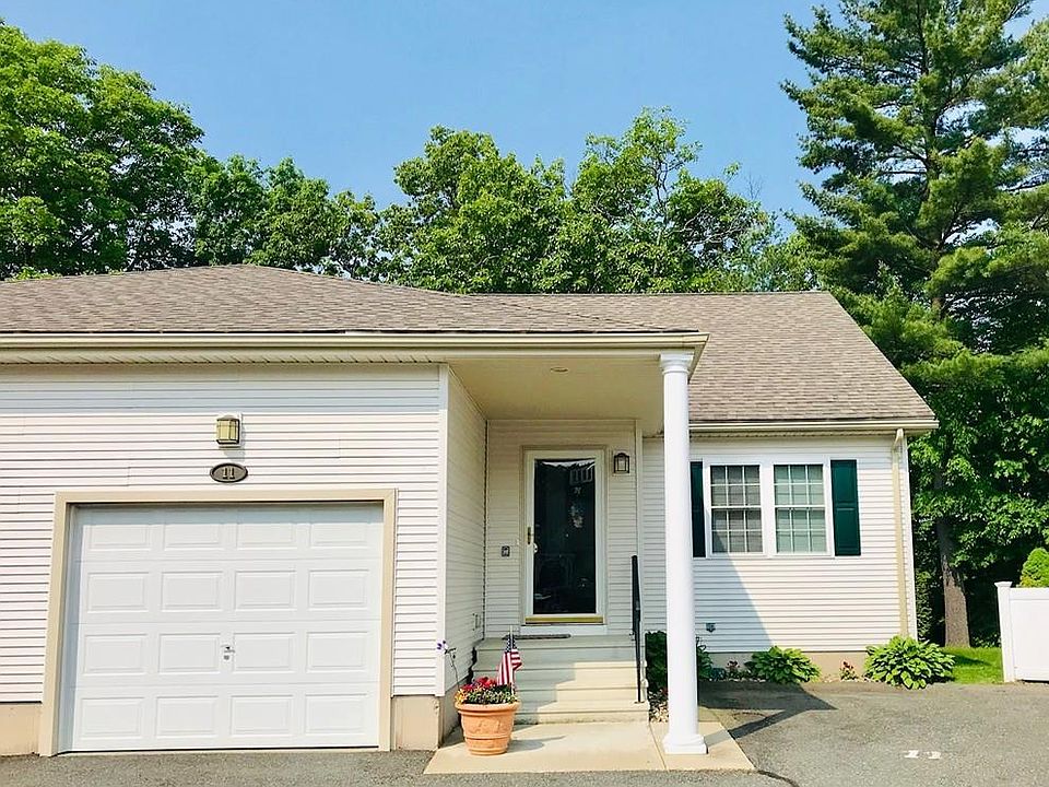 Tucked in the back of the complex, with a private deck facing the woods, is this well cared for garden style condominium. Sporting an open, airy floor plan with cathedral ceilings - living is easy with laundry being on the first floor. Basement is insulated, waiting to be finished if more space required. Hardwood and tile floors are found throughout, gas fireplace a plus! Attached 1 car garage with opener, skylights and N Gas heat with AC are only a few of this condo's many amenities - A carefree life style in a convenient location.
