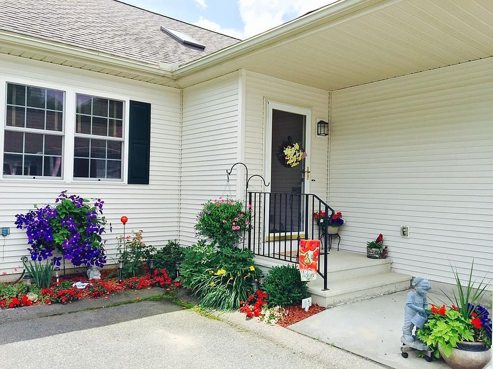 Beautifully appointed model end unit offers an open floor plan with hardwood and tile floors. Cathedral ceilings, skylights and large windows enhance the open airy feeling found in this garden style "over 55" condo. Amenities include a cherry kitchen with corian counters, gas fireplace, built-in window seat, patio and more. Full basement provides good storage, one car attached garage a plus. Propane heat, public water and sewer, club house and gazebo are found here. Located within minutes of Belchertown town center, major routes and shopping - the location is perfect! In immaculate condition - a great place to hang your hat.