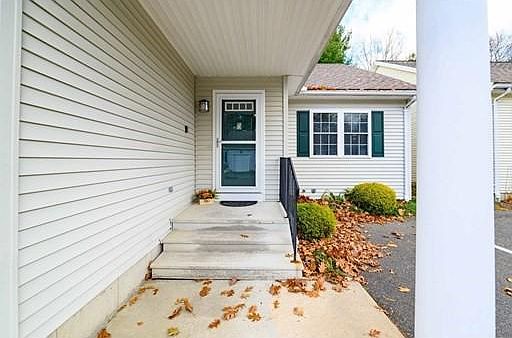 BROOK HOLLOW CONDO: A beautifully maintained 55+ community with all of the amenities of home with the conveniences of condo living, no more shoveling or mowing! Lovingly cared for garden end unit that you can just move right in! Cherry cabinet kitchen with Corian countertops and new dishwasher 2021 and updated refrigerator. Wide open floor plan enhanced by cathedral ceilings with skylights to let the natural light shine in! The kitchen has plenty of cabinets and counter space and is open to the dining room/living room combo with hardwood flooring throughout the 1st level. The gas fireplace in the living room works at the flip of a switch. 2 Bedrooms with ample closets and 2 full baths and 1st floor laundry, Bonus of a heated large finished basement room! Central air and central vac. It's perfectly fine to bring your pet (1 dog under 20 lbs or 2 indoor cats)
