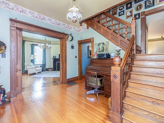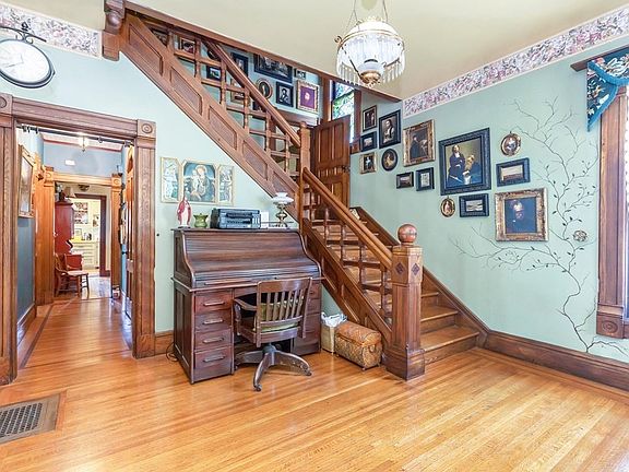 This classic Victorian set gorgeously in one of Springfield's Historic District's highlights OLD WORLD CHARM throughout.. First flr features gorgeous foyer entrance w/ 10 ft ceilings & boasts original millwork throughout. Living rm features pocket doors to foyer and opens to dining rm to a nicely updated kitchen w/ all appliances remaining & a charming family rm w/ woodstove for those cozy winter nights. Second flr highlights 2 bdrm's & the main suite retreat offers a fireplace featuring a sitting rm w/ access to balcony area. Third flr features 2 bdrms and a bth area that is just roughed (currently being used as a room). Beautiful front porch dining, gardens galore. Updates as per seller include: Boiler (2012), hot water tank (2023). Wonderful original period details throughout, yet a comfortable feeling remains. Overall, this classic Victorian home preserves its original period details while offering a comfortable & inviting atmosphere highlighting historical elegance thruout.