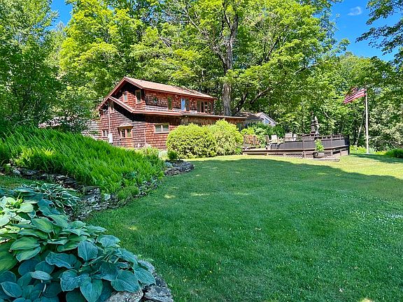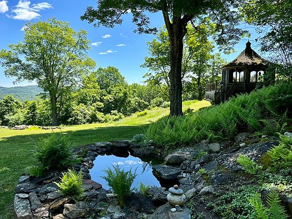Enchanting country estate surrounded by 144 secluded acres overlooking breathtaking pastoral views of an open meadow, majestic maple trees and mountain vistas. This magical setting was once home to renowned artist, A. Hale Johnson where his meticulous rural & nautical paintings were created. The grounds are a perfect display of mature landscape featuring lovely gardens, beautiful stonework, wood roads, and an amazing forest with incredible stand of hardwood trees. Every design element of the home showcases custom quality workmanship, hand-hewn beams, pine paneling and unique details. There is a separate wing w/bedroom suite, studio, and family room/office and a second bedroom suite that overlooks the hilltop views. Also included is a charming artist studio w/dark room, cathedral ceiling and wood stove; kitchen with cherry cabinetry; dining/sitting area w/fireplace; living room w/fireplace; 3 full baths; built-ins; 3 car garage w/heated shop, and a wonderful deck and delightful gazebo.