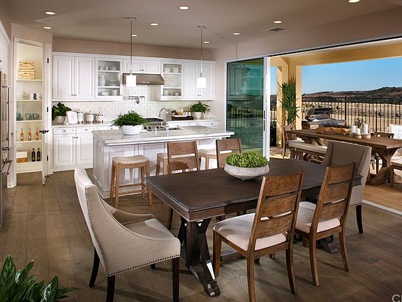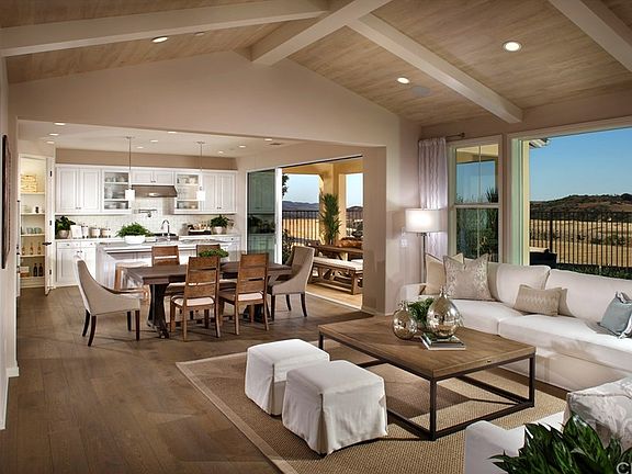 BEAUTIFUL 55+ ACTIVE ADULT SINGLE LEVEL LIVING This expansive, single-story floorplan emphasizes connectivity with family gathering spaces at the home's entry, an oversized great room, large gourmet kitchen and covered California room, perfect for outdoor dining. Adjacent to the kitchen, find a bonus room, powder bath and laundry room, along with a secondary bedroom with ensuite bath offering a tucked-away space ideal for guests. At the front of the home, the master suite is beautifully outfitted with dual walk-in closets and spa-like bath with separate shower and soaking tub. MOVE IN READY. Home is located in award winning Master Planned Development, Rancho Mission Viejo featuring Resort Style Amenities including the Hill Top Club, with Pool, Spa, 2000 Sq. Ft Gym, Cocktail Bar, and more. The Ranch offers a wide array of activities, amenities and events for both Active Adults and Families Farmhouse exterior.
