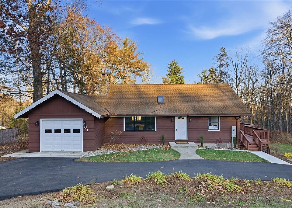 Hurry to view this wonderful 3 bedroom, move in ready home, The home has hardwood throughout with newer kitchen and baths. The home has an open floor plan. Sit by the fireplace in the spacious living room The new kitchen leads to a dining room with vaulted pine ceilings and a view of your 4 acres of woodland. The sliders from the deck lead to an oversized rear deck. The lower level is a walk out with a family room, a bedroom and a full bath. It could easily be a fabulous in-law or teenager suite. A one car attached garage, a new driveway and fresh landscaping. This is a fabulous home in Russel and only 10 minutes to Westfield University and Stanley Park.