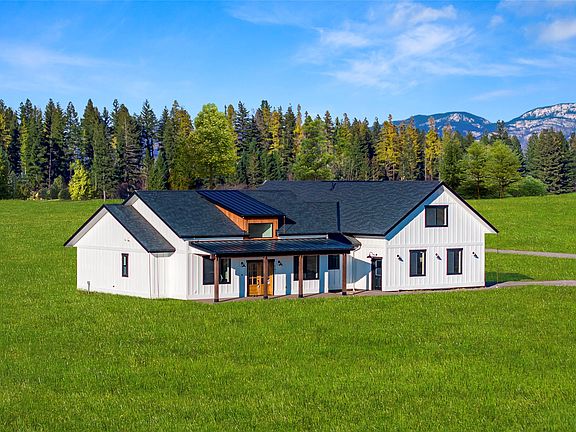 Gorgeous Modern Farmhouse resting on five beautiful acres in the heart of the valley. Experience classic Montana living with unobstructed panoramic mountain views of the Swan Range, Whitefish Ski Resort and Glacier National Park - all just minutes away from Flathead River fishing + hiking access. Attention to detail is paramount in this custom new construction 3,759 sq foot 5 bed/4bath home. Natural light floods in through large windows, gracing every corner of the open concept main floor living space that boasts a large chef's kitchen with granite countertops, artisanal fireplace and hand-crafted sliding barn doors. Every detail was thoughtfully considered - heated floors in primary bath, mudroom built-ins and custom closet finishes. Glass French doors lead you to covered outdoor entertaining space with room for your hot tub and outdoor kitchen. Horses welcome! CC&R's allow a shop, guest house or ADU to be built. Call Courtney Nelson at 406.250.9530 or your real estate professional.