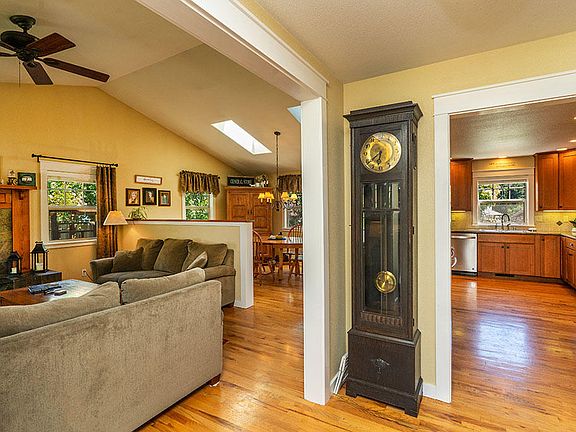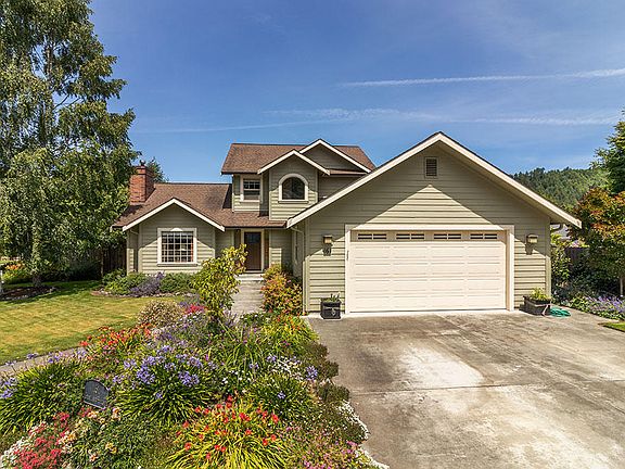 This custom home has a comfortable floor plan with a well appointed kitchen, the master bedroom on the bottom floor with heated jacuzzi tub in the master bath and views of the lusciously landscaped backyard. Warm and inviting living room with gas fireplace and vaulted ceilings! Open dining and living room just off of the kitchen, with french door out to the stamped concrete and brick patio! Cute painters shed tucked in the corner of the green grassy yard equipped with 220 electrical. Finished garage space with sealed floors and storage. Views of the Rio Dell Hills from the second story, and perfect landing for office space at the top of the stairs. Located in the pristine Grayland Heights nieghborhood.
