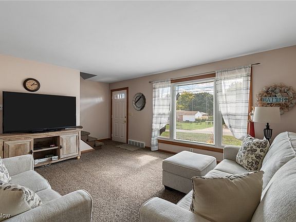Enjoy quiet evenings or entertain with ease in the private backyard, complete with a 10x18 gazebo—ideal for outdoor dining or relaxing with your morning coffee. A one-car garage adds extra convenience and storage. Updates include new storm door 2025, new windows 2019, remodeled bathrooms 2024 and 2019, new refrigerator 2020, new HVAC (furnace and AC) 2017, water heater 2022, plumbing updates, basement walls drywall hung in 2020.