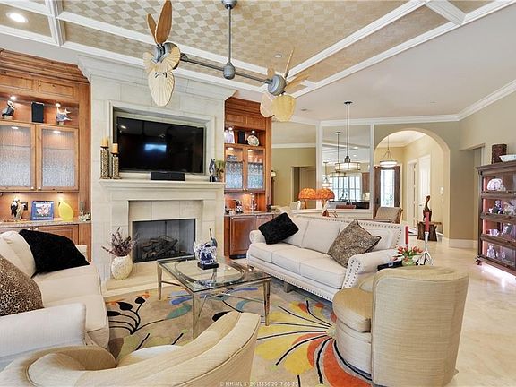 - Ceiling Fan(s), Fireplace, Built-Ins, Smooth Ceilings, Book Shelves, FP - Glass Encl., Sound Sys Wire, Security Sys, Tray Ceiling, Window Treatments