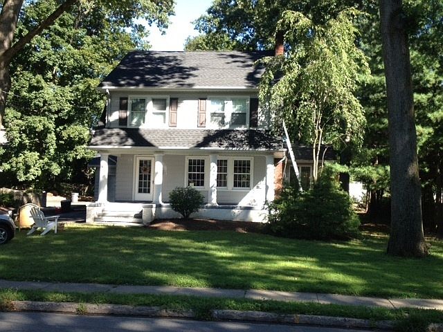 Warm and inviting, charming home that has been tastefully updated. All wide hardwood floors throughout. Fireplace in living room with mantel to ceiling. Eat in kitchen with maple cabinets and granite counters Large dining room and family room with windows all around. Three bedrooms. Walk up attic, finished basement and central air. Patio in back yard. Charm abounds In this beautiful house on a great street for commuters. Walk to town, transportation and schools. Great school system!