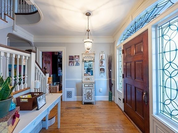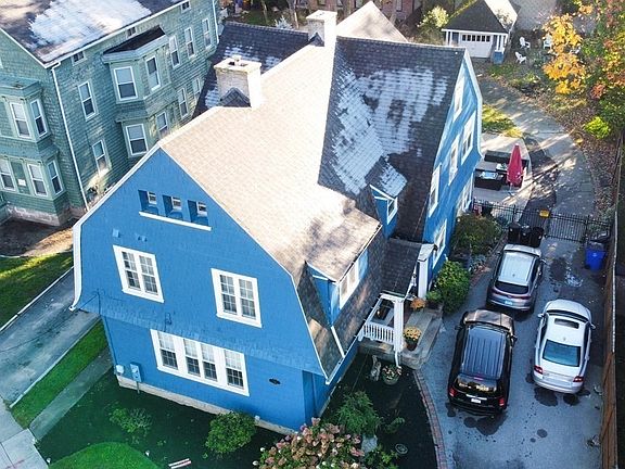 History and craftsmanship in this shingle style Victorian era home with tastefully incorporated updates await you. Located in the Historic Highlands this single family home (originally built as a two family) provides plenty of living space featuring a total of 16 rooms including two renovated master baths. As you walk in the main door under the transom window a main reception area welcomes you with an open staircase. Original wood sliding pocket doors open to lead you by an original built-in display cabinet and into the cozy beamed ceiling living room featuring a fireplace, unique stained glass window and plenty of room for you furniture. The formal dining room includes a custom wrap-around bench seating area and a Butlers' pantry with original wooden top prep sink and built-in ice chest.The main kitchen area features a working Monson Maine Slate Co. sink. Utilities & laundry are in the basement. Exterior offers plenty of room for entertaining, grass area, storage shed and a garage.