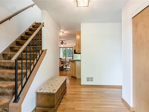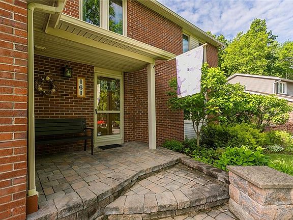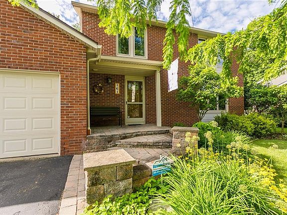 This classic colonial is in a park like setting with quiet neighborhood, woods behind and a very private backyard with a deck. This home is in very good condition and has professional landscaping. The family room has a wood burning fireplace with access to the three season room with skylights. Beautiful hardwood floors. Large eat-in kitchen with hickory cabinets. All appliances included. The dining room is open to the living room. Master bedroom has a walk-in and 2nd closet. Two other large bedrooms. Very popular Hilton schools. The lower level is mostly finished, has a full bath, 12 courses, walk-out, water filtration system, and a wet bar!! On-demand water heater. Non-smoking home. Newer roof. Call today for a super easy showing!