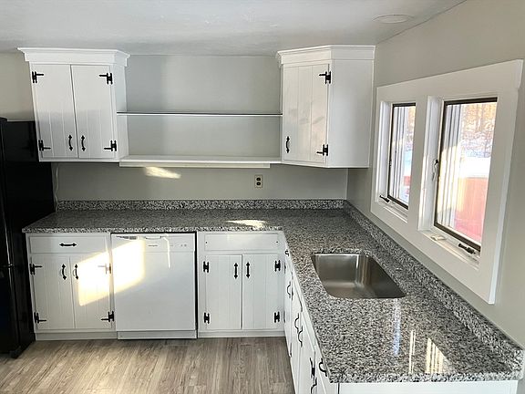 A completely remodeled Cape offering 7 rooms in total, 2 bedrooms and 1 full bath. New flooring, electrical panel, paint, granite countertops and more! With an attached porch,1244 sq feet of living space and 1.35 acres of land, this could be the one you have been waiting for offered at a fantastic price point! This home offers 1 bedroom and 1 full bath on the main level and another 1 bedroom and office space on the upper level. Existing driveway will be moved onto Lot 1. This property is located directly across the street from a small pond located on a town owned cemetery. Schedule your showing today!