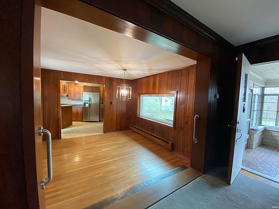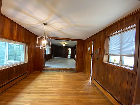 Property includes 2 parcels-totaling just over 3 acres! Don't miss this beautiful limestone ranch located just outside city limits, close to BNL high school. This one-level 1822 sq ft home is unique featuring large rooms, oak hardwood floors, and beautiful original woodwork throughout-including cherry and mahogany. The floor plan includes 2 bedrooms, 2 full bathrooms, large living room, dining room, kitchen, sunroom/enclosed porch, and attached garage with automatic door. The custom oak kitchen includes Shaker style cabinetry, granite countertops and bar, and new stainless steel appliances. Recent upgrades: 8 brand new Anderson windows, new appliances (oven, gas cooktop, microwave oven, washer/dryer), new roof (4 yrs), refinishing of wood floors, and electrical panel upgrade. MUST SEE! Appliances included.