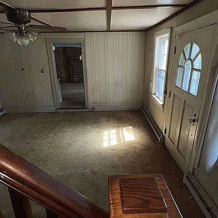 Do not miss this wonderful old world charm farmhouse. Large eat in kitchen with provisions for a woodstove. Comfortable livingroom with stairs up to the second floor bedrooms & bath. Bedroom 2 is at the top of the stairs, boasting pumpkin pine floorboards. The master bedroom can be entered through bedroom 2, or, You can use the original Jersey winder stairway from the kitchen to retire for the evening. There is a three season enclosed front porch, with a doorway that opens into the attached one car garage, with a workshop to the side. Nice size yard with cement block one stall barn/ shed with a rear run-in for additional storage. The house can be occupied as is. It has oil heat with a well maintained hot water baseboard boiler. 100 amp electric service, first floor washer dryer hook ups, & a paved driveway that can hold 4 vehicles. House & property are being sold “As Is”