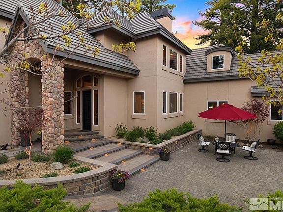 Alpine setting, fully remodeled + 4 car garage, you’ve got it all! Located in St. James's Village, custom home feels like a peaceful getaway, yet only 15 mins from shopping & Mt. Rose Ski. Primary BR on main level. Recently remodeled inside & out. Long improvement list inclds renovated kitchen-new cabinets, quartz counters, SubZ & Wolf appliances, spa-like primary bath, new paint inside & out, carpet & window coverings. Added nat gas generator, water filtration & softener, tankless hot water & new AC., Exterior enhancements make entertaining a forested dream! Added sports court, firepit, built-in BBQ, countless new trees. Sports court accommodates basketball, pickleball and volleyball. Additional recent improvements include new Built in BBQ island, outdoor dining area and firepit, additional pavers & seating area, planted multiple trees: maple, pear, aspen, cherry, and blue spruce, plus countless perennial plants, extensive new drip irrigation system. New landscape lighting for nighttime entertainment. New kitchen appliances include, Sub Zero refrigerator, Wolf range, beverage refrigerator, trash compactor, and micro drawer. ROS and potassium water softener, plus a new tankless water heater. The cozy family room added a stone fireplace and mantel. New custom lighting throughout. New carpeting in all BR’s, refinished hard wood floors, Nest controls and added security surveillance with interior an exterior cameras & motion controls. Replaced the asphalt driveway. The 4-car garage is 1635sf with RV parking. Potential for an additional ~1000sf of living space or storage opportunity above the garage in a roughed-out attic. The two bedrooms upstairs share a Jack-and-Jill bathroom with a jetted tub, separate shower & double vanity. With its prime location in St. James’s Village near miles of walking trails and the tranquility of the Sierra Mountains, this home offers the perfect blend of natural beauty and modern convenience. Feature list and floorplans in documents.