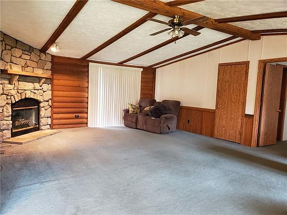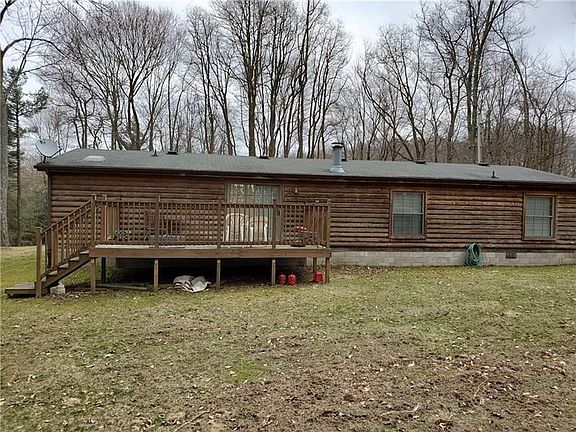 Enjoy one floor living in this immaculate log home on eight private wooded acres. The inviting open floor plan features a spacious living room with a fireplace and sliding doors to the deck. The kitchen dining room area has abundant cabinetry and counter top space with bar sink. You'll also find a large Master suite with it's own bath that includes a garden tub and separate shower and a large walk in closet. The property is mostly wood ideal for hunting. Included in the sale is 2 sheds and above ground pool.