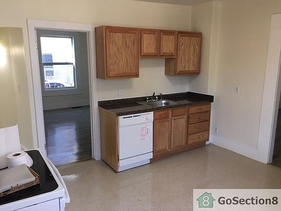 New Renovated, Deleaded 3 bedroom Apartment in 2 Family Property Large (approximately 800SF) 3 bedroom, deleaded apartment located on the 1st floor of a two family home. Freshly painted. New flooring. Updated kitchen and bathroom. Appliances includes refrigerator, stove, dishwasher, disposal, microwave and stack washer/dryer in unit! Security alarm system. Off street parking for two cars. Large yard. Large porch. Section 8 welcome. For more properties like this visit GoSection8.com.