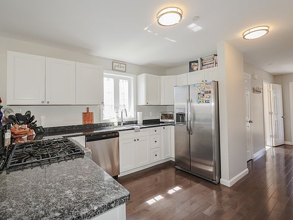 Stunning luxury end-unit Townhouse for sale in the sought after community of, The Neighborhoods at Woodlawn Pond! It is perfectly situated behind a wooded cul-de-sac with trees to the side and to the back for privacy. This is a non-smoking, no pet home however the association allows pets by approval. This townhouse features 3 bedrooms and 2.5 baths with an open-concept kitchen, dining, and living room with a patio door leading to a lovely deck to enjoy and relax outside! The large master bedroom contains his and her large closets and a spacious en-suite bathroom. The home features beautiful high-end granite countertops in the kitchen and quartz in the bathrooms, stunning white oak hardwood floors throughout, upgraded multi-zone heating, and central AC. The basement has a full-size egress window and is partially rough finished!.. it waits your desired completion. All furniture in this townhouse is negotiable. Amenities include a clubhouse with an exercise room, theatre room, large function room with full kitchen, beautiful sitting area with gas fireplace, an outdoor pool & hot tub, and tennis courts! There are plenty of nature/trails to enjoy as well. Don't wait..start your maintenance and chore free life style today! OPEN OPEN HOUSE SAT 5/4/24 9 to 11am