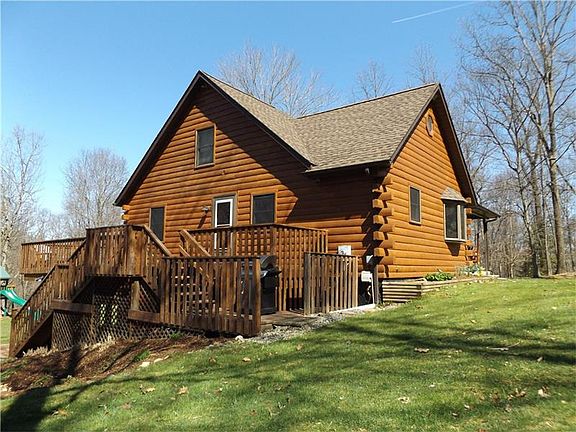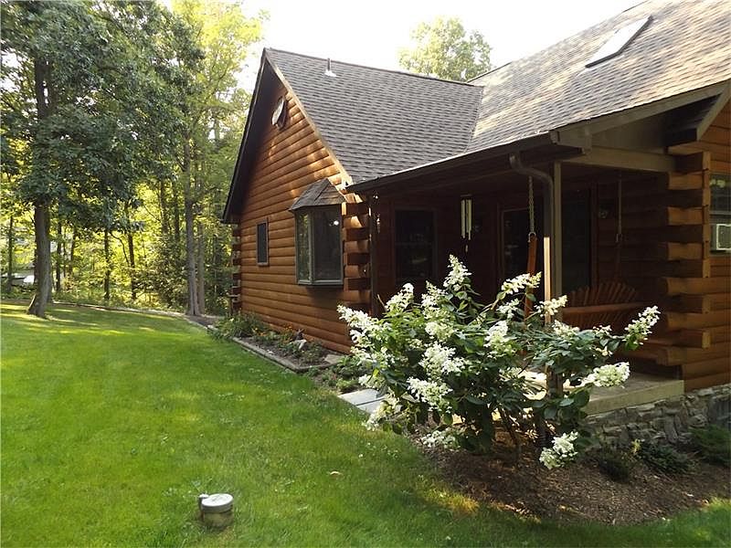 Your great escape that is still super convenient! Beautifully restored LOG HOME on 3.65 wooded acres in Mars Area School District. Floor to ceiling stone, wood-burning fireplace, lodge-like living inside with 3 bedrooms, 3 full baths, AND a loft! Fabulous storage, generous rear deck with private view, front porch complete with matching porch swing, first floor laundry, large master bedroom with walk-in closet, large storage shed too. New roof with transferable warranty. All logs re-sanded and treated just last year. Tons of off-street parking. All very tastefully done! OGM rights with lease convey.