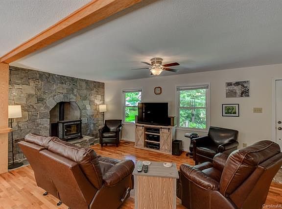 Beautiful and move in ready! Updated inside and out with an amazing soapstone wood stove to enjoy. One level brick w/garage and two outer buildings w/garages. Fresh grading, new drain lines, new plumbing - 2015, 30-year roof - June 2017, new HVAC - 2018, all outer buildings have been newly painted and wood/doors replaced where needed, new patio stones in back w/refinished porch slab to enjoy the peaceful private back yard. Garden lovers, this is your dream. This home has 36" wide doors (excluding patio door), 37.5" hallway and open concept with Kitchen Island. Fenced-in area to the side which is great for dogs and owners will leave or take down for you. $3,000 appliance package and home warranty offered. Additional lot has a level area already cleared to build or subdivide. Peaceful yet close to all you need. 10 min's to grocery store. Close to Lowe's and Walmart! 12 min's to Black Mountain & 25 min's to East Asheville. This is a must-see home!