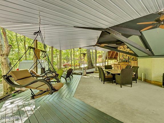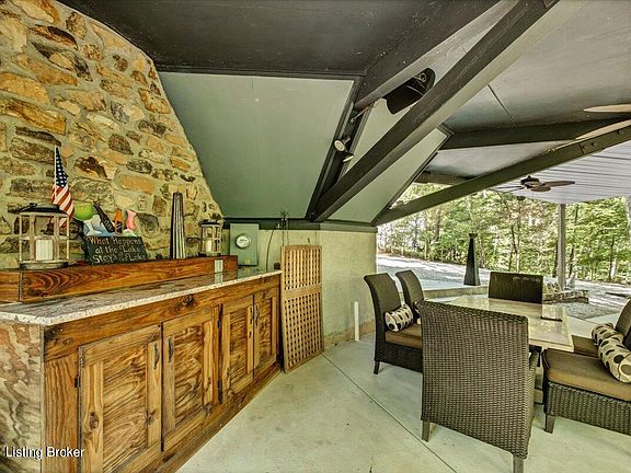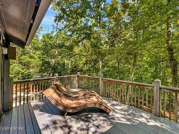 GATED COMMUNITY. Unique post and beam construction located in sought after Lochober--a gated community with paved roads. This stunning lakefront home has water views and a gentle walk to the lake. The dock will transfer with the Corp of Engineer's approval. You'll love the panoramic views of mother nature year round from the multiple windows thru out the home. Enjoy entertaining with your favorite beverage on the spacious rear deck which wraps around the home or the covered lower level patio. The kitchen has been updated with new cabinetry and quartz counter tops and opens to the great room. The master has a private bath. There's an additional bedroom and full bath on the main level. The lower level is unfinished and great for storage. Recent improvements include a new metal roof and