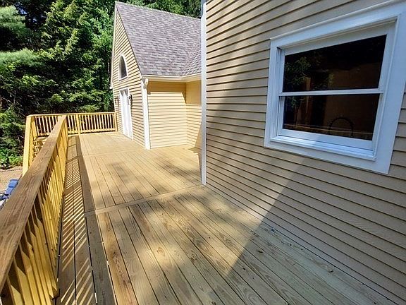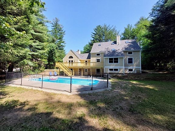 Stunning, Beautiful, Spacious and LOCATION! This 1990 Colonial has over 3,000 sq ft of interior living space that features 5 bedrooms, 3 full bathrooms ( Updated ), a 2 car garage with loft above, and bonus room. This newly renovated home sits on over 2 acres with a newly built deck which spans over half the house that leads directly to the in-ground pool or into the walkout basement right into the hot tub. The kitchen was just remodeled and has quartz countertops and new stainless appliances. The newly remodeled master bathroom has new tile flooring and shower. The hardwood flooring has been refinished and new vinyl flooring and carpet throughout. The living rooms feature a stunning fireplace and a wood burning stove. Washer/Dryer hook ups on 1st floor. The high ceiling full walkout basement is ready to be finished. New roof ( besides Garage ), new well pump and Title V Passed. Abuts conservation land with trails and brook. Plenty of extra storage throughout! Book your showing NOW