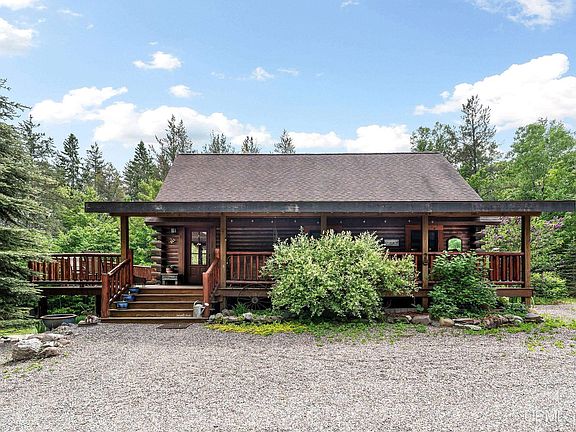 Imagine waking to the soft chorus of birdsong as sunlight filters through budding maple, birch, & pine —your log home’s knotty-pine interiors warmed by a gentle morning breeze. You step onto the porch with a steaming mug in hand, inhale the forest’s fresh scent, & watch wildflowers carpet the forest floor. Weekends mean exploring nearby hiking/biking trails, discovering hidden waterfalls. Summer brings endless days of sunshine dancing across the lake’s surface just a short drive away. Inside, the lofty cathedral ceiling fills with golden light, perfect for lazy afternoon reading or hosting friends around the firepit. Your workshop hums with weekend projects—perhaps refinishing furniture or tuning your mountain bike—while evenings unfold with barbecues under the canopy of stars, the log beams glowing amber in the firelight. Autumn is a painter’s dream: fiery reds and golds blaze across every tree. You bundle up for crisp morning walks, the crunch of leaves underfoot, and inhale the smoky tang of bonfire season. Back indoors, your walk-out basement’s cozy family room beckons—board games laid out, the sauna heats muscles tired from trail runs, & the home office glows with warm lamplight. When winter arrives, the landscape transforms into a quiet, snow-blanketed wonderland. Mornings start beside frosted windows, followed by snowshoe adventures & cross-country skiing through your own backyard. After, you return to thaw in the sauna, curl up in the loft with a blanket, & watch the snowfall drift past your log walls—secure, serene, & utterly yours, in every season. All offers to be reviewed 7/21/25 at 3pm with a response in 24 hours