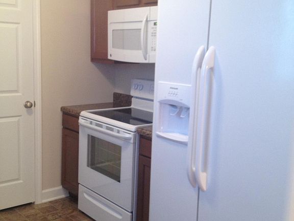 Two bedroom townhome with two and a half bathrooms. Huge living room with built-in shelving and laminate hardwood floors, dining area, modern kitchen equipped with all appliances including flat top range and microwave, and separate laundry room. Both bedrooms have walk-in closets and a full bathrooms. Private patios with roomy storage area and convenient parking right at your back door.