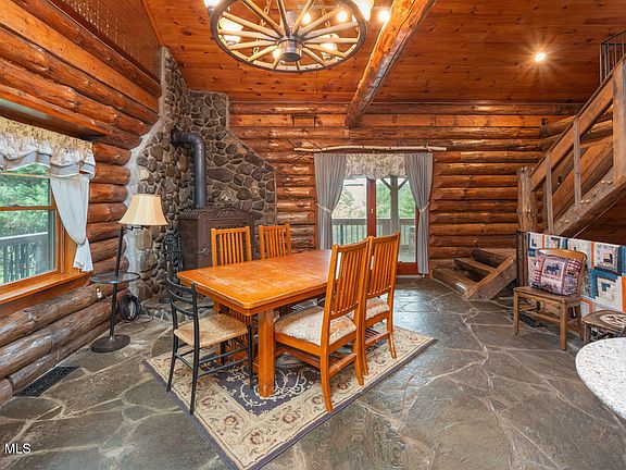 Spa-bath comfortsSweeping valley viewsMassive wrap-around porchCast-iron stoveStunning log architectureTwo-car garageSeamless open-concept layout