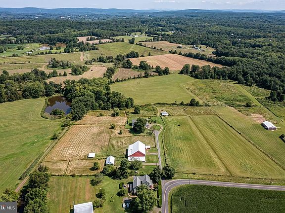 7 acres are currently farmed. This 19 acre property cannot be subdivided. Original Barn and pole barn, plus multiple sheds on property. Across the street is 112 acres of preserved land. There are 4 troughs throughout the pastures. 3 of them are heated. Current owner has had chickens, horses and llamas throughout the years.