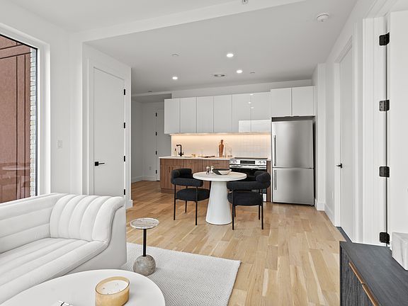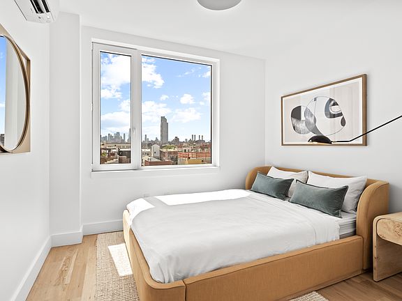 Live the ultimate Greenpoint lifestyle in this brand new 2-bedroom, rental with elegant interiors and luxurious amenities. Meserole Green is a modern elevator building close to McCarren Park and all the restaurants, cafes, and shops along Manhattan Avenue. Amenities include a private gym, package and laundry rooms, a furnished lounge and workspace, and a stone-paved rooftop deck with picturesque neighborhood views and a convenient dog run. The building has a video intercom system and is pre-wired for FiOS and Spectrum internet and cable. This stunning home features an open-concept layout marked by natural wood travertine floors, recessed lighting, and floor-to-ceiling double-pane windows that let in abundant light while keeping the noise outside. The beautiful walnut wood kitchen boasts custom cabinetry, stunning white stone countertops, a deep sink, and gorgeous appliances. Both bedrooms are spacious and bright with built-in closets and easy access to full bathroom with custom-built cabinetry and deep soaking tub. The home also comes with an in-unit washer/dryer. Meserole Green is close to popular eateries like Rule of Thirds, Peter Pan Donut & Pastry Shop, ACRE, Wenwen, and Esme. Nearby cafes include Cafe Grumpy, Pueblo Querido, and Himalayas Newa Cafe, while grocery stores in the area include Associated, Key Food, CTown, and Rachel's Garden. The G subway and NYC Ferry are nearby public transportation options allowing access to Manhattan, Long Island City, and Southern Brooklyn. Pets are welcome.