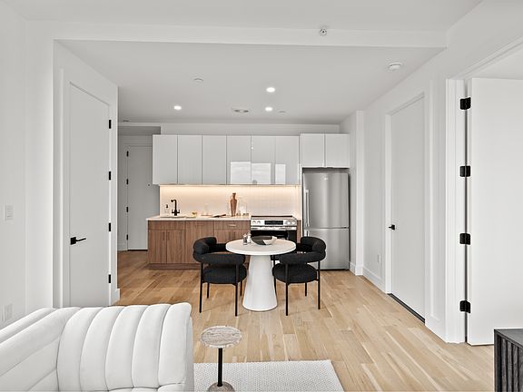 Live the ultimate Greenpoint lifestyle in this brand new 2-bedroom, rental with elegant interiors and luxurious amenities. Meserole Green is a modern elevator building close to McCarren Park and all the restaurants, cafes, and shops along Manhattan Avenue. Amenities include a private gym, package and laundry rooms, a furnished lounge and workspace, and a stone-paved rooftop deck with picturesque neighborhood views and a convenient dog run. The building has a video intercom system and is pre-wired for FiOS and Spectrum internet and cable. This stunning home features an open-concept layout marked by natural wood travertine floors, recessed lighting, and floor-to-ceiling double-pane windows that let in abundant light while keeping the noise outside. The beautiful walnut wood kitchen boasts custom cabinetry, stunning white stone countertops, a deep sink, and gorgeous appliances. Both bedrooms are spacious and bright with built-in closets and easy access to full bathroom with custom-built cabinetry and deep soaking tub. The home also comes with an in-unit washer/dryer. Meserole Green is close to popular eateries like Rule of Thirds, Peter Pan Donut & Pastry Shop, ACRE, Wenwen, and Esme. Nearby cafes include Cafe Grumpy, Pueblo Querido, and Himalayas Newa Cafe, while grocery stores in the area include Associated, Key Food, CTown, and Rachel's Garden. The G subway and NYC Ferry are nearby public transportation options allowing access to Manhattan, Long Island City, and Southern Brooklyn. Pets are welcome.
