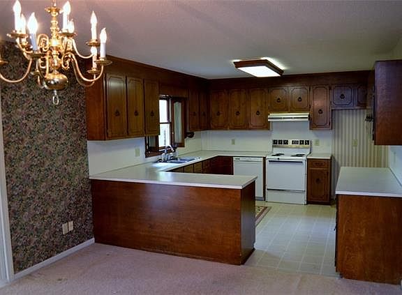 Enjoy this summer in your new sun room and multiple deck space overlooking the peaceful rear yard. All brick ranch with double carport easily converted into a garage by adding a door. Beautifully landscaped .64 acres just outside city limits. Large living area with brick wood burning fireplace. Kitchen with great counter space and formal dining area. 2 well sized bedrooms with 2 full baths. The full basement is unfinished and gives you additional room to grow.