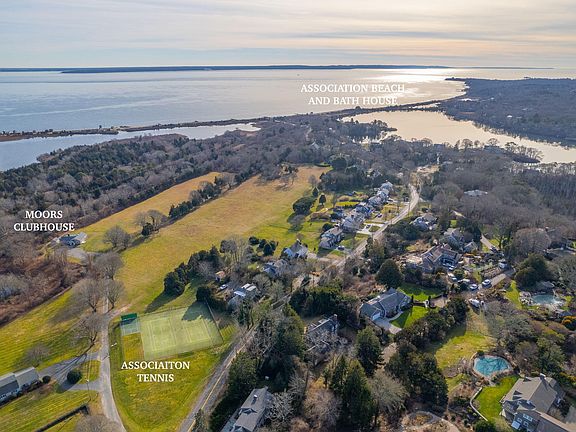 Welcome to The Moors Falmouth, an exclusive haven comprising 60 residences, each embraced by the luxury of a private beach, beach house, tennis courts, a club house, and vast open spaces. This expansive ranch, spanning over 3600 square feet on the main level, with an additional nearly 900 square feet of finished heated space on the lower walkout level, epitomizes coastal living at its finest.As you step through the front door, a grand foyer beckons, leading to a living room adorned with a fireplace and walls of glass that frame the breathtaking backdrop of the lush backyard and Vineyard Sound. To the left, discover a sunlit morning kitchen, a convenient half bath, and a mudroom/laundry room that seamlessly connects to a two-car garage.The residence unfolds with a den/family room offering captivating views of the expansive backyard. Two distinct wings house four bedrooms in total. The primary bedroom boasts an ensuite bath and panoramic views, while the second bedroom features its own scenic vistas and a full bath across the hall. The second wing hosts two additional bedrooms and another full bath.Descending to the lower level reveals a vast family or rec room, complete with a fireplace and a walk-out to patio and the yard, providing an ideal space for relaxation and entertainment. This residence is truly a generous canvas, offering opportunities for renovation or expansion upwards, allowing you to further elevate and maximize the panoramic views that define this coastal gem. Embrace the potential and create the coastal retreat of your dreams in this unparalleled enclave at The Moors Falmouth. This is an ESTATE Sale. Association information for the Moors, please confer with listing agents.