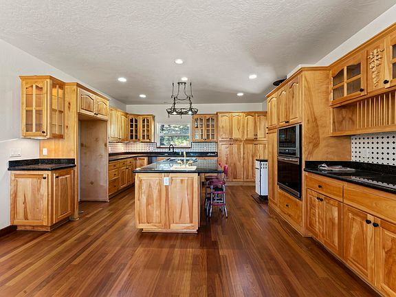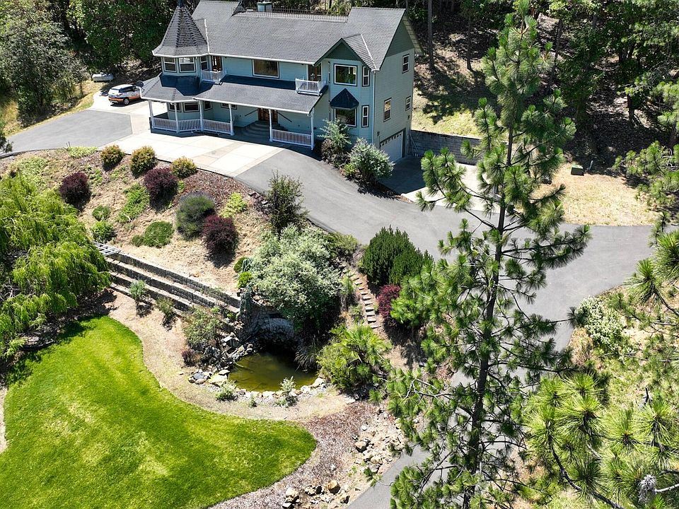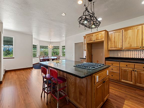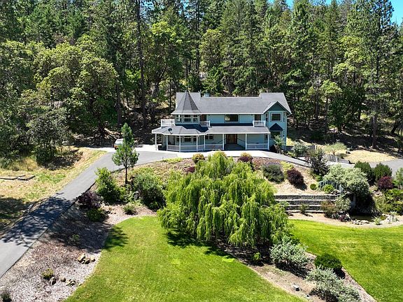 Country living minutes from Grants Pass, this grand home nestled on 5 acres is a must see! Spectacular views, spacious floor plan and a welcoming entrance to the foyer and stunning curved staircase await you. The kitchen offers granite counters, new appliances, custom cabinets with recessed lighting, abundance of storage and a large kitchen island. The master, located on the 1st level has 2 walk in closets, jetted tub and step in shower. Upstairs features an open area for entertaining, bedrooms on each side with balconies overlooking the valley. The office or possible 4th bedroom is located upstairs. Over 1600sf finished basement & add'l storage with access to the 2 car garage offers endless storage or shop space. The front yard is magnificently landscaped with lawn, stunning weeping willow tree and a 10' waterfall into a pond. Interior of home was recently painted & the hardwood floors resurfaced. Strong well per seller. All information deemed reliable but not guaranteed.