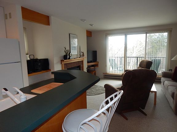 Two bedroom one bath one level ski on ski off condo. Located at Mountainside in Sugarbush Village. Turnkey unit in pristine condition. Never in the rental program. End unit with extra windows and extra deck off Primary bedroom. Cozy and inviting, gas fireplace insert. New washer and dryer.