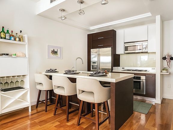 Discover this expansive and unique 1,035 sq ft duplex in the heart of Williamsburgperfect for live/work setups or anyone seeking space and flexibility. This convertible 2-bedroom home features two separate entrances and a smart, functional layout. The upper level offers a bright, open-concept living and dining area with oversized windows and warm wood floors. The sleek kitchen is equipped with a Bosch range, dishwasher, and breakfast bar, while a full bathroom and queen-sized bedroom complete the floor. Downstairs, you'll find a built-out second sleeping area with custom closets, a spacious recreation/office alcove, a half bathroom, and a large laundry room featuring a full-size Maytag washer and dryer. This well-maintained 37-unit condominium offers a range of amenities including a fitness center, media room with TV and WiFi, package room, video intercom system, a part-time on-site super, and a beautifully landscaped common courtyard with space for grilling and lounging. Located just 3 blocks from the L train and moments from neighborhood favorites like Whole Foods, Trader Joe's, the Apple Store, top restaurants, bars, and boutique shopsthis home puts you in the center of everything Williamsburg has to offer. Application Fees (as required under the FARE Act): $20 credit check (non-refundable) $250 condo board application processing fee (non-refundable) $500 move-in/move-out fee or deposit All fees are payable only if your application is approved.
