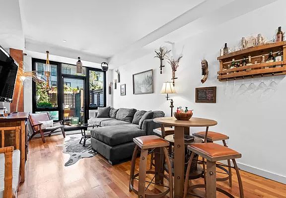 Opportunity to live in prime Williamsburg in a spacious one bed, one bath home with a beautiful, attached private veranda. The over 200 square foot patio is complete with a custom pergola and is perfect for entertaining, barbecuing, or tending to your garden. Inside the home it's pin-drop quiet as it faces the back to the greater common outdoor space for the building. The residence has hardwood floors throughout and floor-to-ceiling windows. The chef's kitchen features stainless steel Bosch appliances, including a dishwasher, and an immaculate white Caesarstone counters with a breakfast bar. The living room is large enough for your L shaped couch and dining room table with space to spare. The bedroom can fit a king sized bed, a dresser, and has an excellent closet. The spa-like bathroom offers a deep-soaking tub, vanity with marble surround, and 2 separate entrances providing access directly into the bedroom as well as into the common hallway for guests. The home also has a Bosch washer and dryer. 161 North 4th features a virtual doorman, gymnasium, tenants lounge and a large shared outdoor space. There is parking available in the building for rent. Pets allowed!