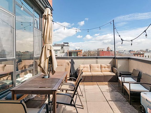 ONE BEDROOM + PRIVATE TERRACE + PARKING SPACE + STORAGE THE APARTMENT: Have abundant and natural sunlight all day long as you walk into this top floor large one bedroom with floor-to-ceiling windows and a RARE and massive 160 sf private in-unit roof terrace with spectacular open views. This immaculate 740 sf top-floor corner one bedroom condo with 10-feet high ceilings and floor-to-ceiling windows is beaming and flooded with natural sunlight. The floor-to ceiling windows are designer-made with black and metal frames that reveal a full directional spectrum of sunlight from South and East directions. A RARE and spacious 160 sf private in-unit roof terrace overlooks endless sky. The large bedroom is also flooded with sunlight and views through the terrace. The chef's kitchen features an open layout and is perfect for entertaining and is complete with white Caesarstone countertops, a breakfast bar, along with stainless steel Bosch range, oven and fridge, and a Whirlpool dishwasher. The full bathroom features elegant and high-end spa quality finishes with Toto fixtures, a Neptune deep soaking bathtub and luxurious marble finishes. A washer/dryer is conveniently located within the unit. Other noteworthy features found in 4F include: integrated overhead pantry storage cabinets, video intercom, central air conditioning and remote climate control through Nest Thermostats. THE BUILDING: Created by renowned architect, Karl Fischer, and interior designer, Andres Escobar, NFORTH is a masterpiece of industrial luxury driven by the future. Built in 2007, NFORTH is a 4-story high-end elevator condo building with 37 primary residences in an unmatched location that cannot be beat at the center of Williamsburg. Common elements of the building include high-end lobby finish, fitness center, indoor parking, large storage units, residents' lounge with TV and WIFI, a gorgeous and massive outdoor landscaped courtyard with unique verandas and barbeque grills. Services include a daytime superintendent who accepts packages, virtual doorman and video intercom system. THE LOCATION: Situated on the corner of North 4th Street and Driggs Avenue, at the center of Williamsburg, NFOURTH is at the heart of Williamsburg and is one block away from Wholefoods, the Apple Store, Brooklyn Bowl, The Music Hall of Williamsburg, the Brooklyn Winery, Equinox, as well a litany amazing restaurants, cafes, bars, boutiques, culture and nightlife spots. The Bedford Avenue L train station is 3 blocks away and takes you to Manhattan after one stop. The Water Ferry that links to Manhattan, Greenpoint, DUMBO and Long Island City is also a few blocks away. PARKING: There is one (1) parking space included with direct access through the building and sizeable to fit an SUV. STORAGE: There is one (1) 35 square feet private storage room included.
