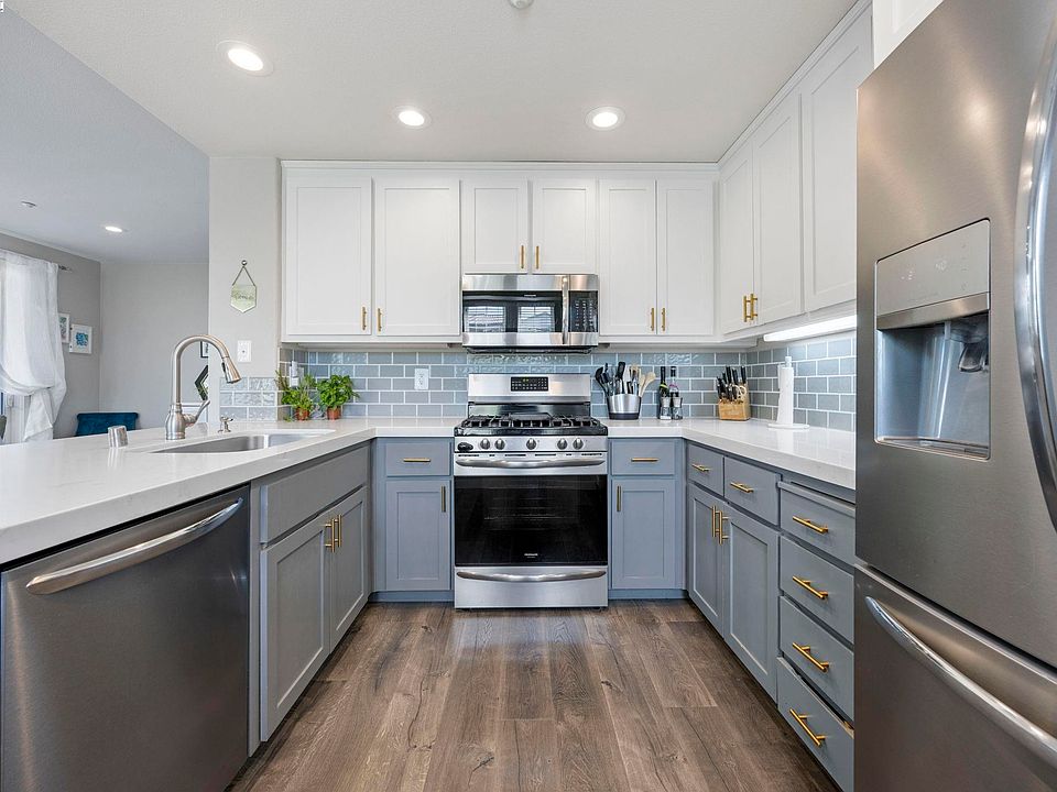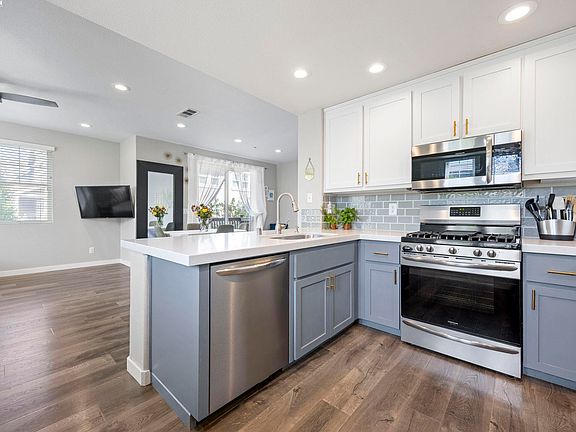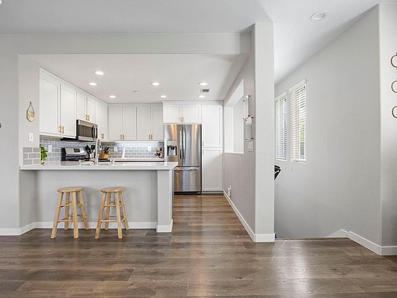 ASK US about possible BUY-DOWN in interest rate ... This stunning upgraded corner unit is ideally located in the heart of Downtown Livermore, Station Square. The gourmet kitchen boasts quartz countertops, a custom backsplash, breakfast bar, and upgraded appliances-perfect for both everyday living and entertaining. The open floor plan features luxury wood-like flooring, triple-pane windows for soundproofing, and an abundance of natural light. Enjoy relaxing or entertaining on the private decks overlooking the vibrant downtown. Additional highlights include a two-car tandem garage with ample storage and an in-unit washer and dryer. Just a short stroll to Livermore's award winning downtown, including shops, restaurants, theaters, the ACE Train Station, and more. more info... https://clout-real-estate-marketing.aryeo.com/sites/pnxjbae/unbranded