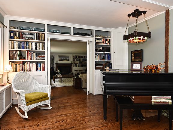 Located close to historic Ridgefield center, this 1820 Greek Revival Colonial sits proudly on almost 3 pastoral acres highlighted by specimen trees, perennial gardens and open fields.According to the Ridgefield Preservation Trust this home is"almost a pure example of Greek Revival architecture as it existed in rural communities" in the early 19thC. This historic home of clapboard siding and field stone foundation has 4 bedrooms, 3 fireplaces, 3 full baths and is steeped in historical detail. The classic foyer leads to a formal parlor and a dining room with a large fireplace, wood floors and a room-wide window overlooking the manicured south lawn. The library has a fireplace with a simple period designed fireplace surround, bookshelves cupboards and wood floors. The Great Room has built in cabinets, fireplace with raised hearth, and a Dutch door leading to the stone terrace. Directly off the Great room is a side entrance vestibule and full bath. The expanded kitchen has a vaulted ceiling with exposed beams, double height window, a large pantry, center island, plenty of cabinets, a work center and a wonderful breakfast area. Next to the kitchen there is a glorious sun room, a large laundry room, full bath and 3 season room. A back stair leads to 4 beds, a study, full bath and a large storage area that could be converted to bedrooms/baths. This authentic historic home with its bucolic lawns, gardens and open fields is reminiscent of a bygone era: the perfect retreat or home for the antique lover or connoisseur.