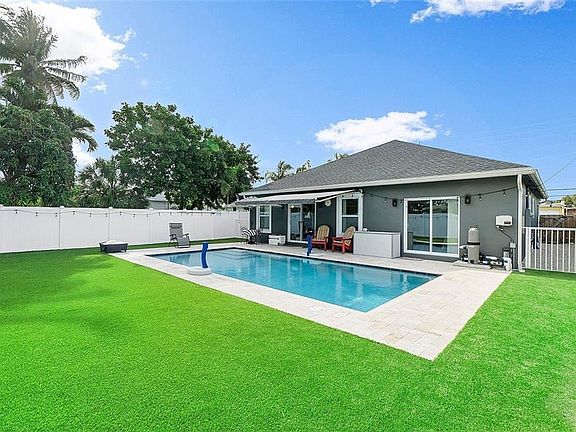 NEW CONSTRUCTION HOME (2020) IN NORTH ANDREWS GARDENS with a NEW POOL RECENTLY ADDED! This 3-bed, 2-bath exquisite residence features elegant porcelain floors throughout, custom European kitchen cabinets, quartz countertops, high-end stainless-steel appliances including a smart refrigerator to provide a contemporary culinary experience. Enjoy the spacious master bedroom with two walk-in closets, elegant bathrooms with European-style vanities, High-impact windows and recessed lights. The fenced backyard boasts a 30ft x 14ft pool which creates a refreshing oasis for outdoor enjoyment and leisure. Close to Lauderdale by the Sea, Wilton Manors, and Shopping. Don't miss this meticulously crafted home for modern living at its finest and experience the best that Oakland Park has to offer!