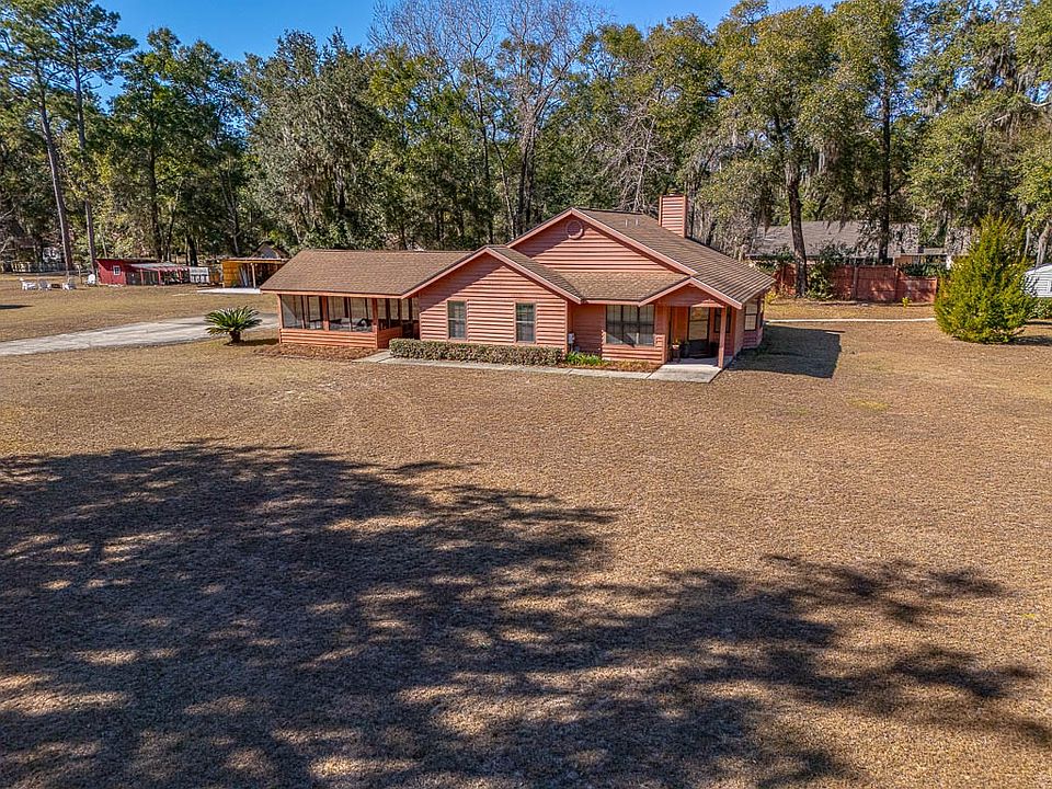 Welcome to this fabulous ranch style home in the established neighborhood of Heritage offering NO HOME OWNERS ASSOCIATION OR DUES! Plenty of room for a garden, chickens, etc... on this 1 ACRE dream property that's not your average cookie cutter subdivision. You will love the screened porch to relax and enjoy cookouts with family and the breezeway is just adorable! They don't make homes like this anymore featuring 3 bedrooms, 2 full baths, and a converted garage to hang out and play pool and socialize. There is also a living room with bay windows, newer LVP flooring and a real wood burning fireplace. The eat-in kitchen completes this cute home offering a fridge, oven/stove, microwave, dishwasher and dining area. The storage building stays with the home and is ideal for your lawn equipment. Great location within 5 miles from Darien Waterfront and 6.9 miles to FLETC, and minutes to I95 and the new Buckee's. All Electric, Well and septic, GA Power. No flood insurance RQD, Septic was pumped July 24, HVAC less than 10 years, Hot water Heater installed 4/21, The appliances-Fridge, dishwasher, range/oven and microwave was purchased from Coastal App in 4/21. Park your boat or RV on the huge lot w/plenty of room for your outdoor equipment.