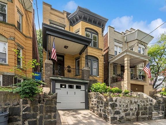 Tucked away at the end of a quiet cul-de-sac atop the Palisades, just up the hill from the Weehawken waterfront, Whole Foods and uptown Hoboken, 161 Nesbit St. offers everything you’ve been searching for… and so much more! Space will never be an issue in this massive, gut-renovated 5 bedroom, 4 bathroom home that sprawls across 3 levels of exquisitely finished, turnkey living space, located just 12 minutes from Midtown Manhattan. Currently utilized as an oversized one-family, this beautifully renovated brownstone is a legal two-family house, set up as an owner’s duplex with a bonus top floor unit that offers the ultimate flexibility for an in-law suite, au pair apartment, or rental income. Enter the main floor bursting with natural light, soaring ceilings and historic details (including the restored original staircase) and transition into a tastefully designed modern layout. A large open kitchen and living room offers the ideal blend of elegance and functionality with gleaming quartz countertops, ample white shaker cabinetry, pendant lighting, a custom waterfall table, reclaimed wood shelving and exposed brick. A full suite of stainless steel appliances (including a double-oven and built in wine fridge) is great for cooking, entertaining and family dinners. Or dine al fresco in your immaculately landscaped backyard oasis with a spacious bluestone patio that is perfect for hosting summer BBQs. Rounding out the main level are 2 bedrooms & 2 full bathrooms, including an oversized master bedroom with large bay windows, custom woodwork and a sparkling en suite bathroom with a quartz-topped dual vanity, marble-floored shower with glass door and linen closet. Continue past the mudroom containing a handcrafted, built-in storage bench and down the stairs to a massive open lower level that houses a kids’ playroom, laundry, large full bathroom and home office. No need to trek out to a movie theater anymore, since the lower level also includes a spectacular home theater system complete with hard-wired surround sound. Not to be outdone, the second floor offers 3 additional large bedrooms, a separate office/exercise room, a full bathroom & laundry room. Original details abound on the upper level with soaring ceilings, plaster crown molding, rosette glass transoms, original ceiling medallions & built-ins. These historic details blend tastefully with another open kitchen that features a 4-seat island, quartz countertops, stainless steel appliances (including a double oven & built-in wine fridge) and brick accent wall with reclaimed-wood floating shelving. Stunning curb appeal includes a restored original cornice on the front facade and best of all, you will never have to worry about street parking again because your private driveway leads to an attached one-car garage that boasts a newly installed EV charger with 220V service. Additional features include 2-zone central HVAC with NEST thermostats, gleaming hardwood floors, recessed lighting with dimmers, new Pella windows and skylight, soundproofing between units & much more. Why choose between the suburbs and city living when you can have the best of both worlds with this truly one-of-a-kind home.
