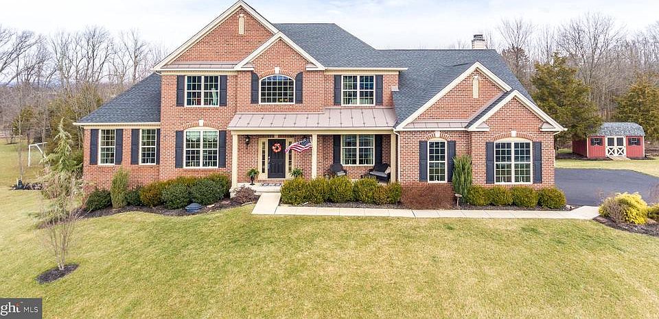 5 years young Toll Brothers home, on over an acre of land, in scenic Hilltown Township. Beginning with the front porch, handsome roof lines and a full brick front, the homeowner selected exquisite upgrades throughout. Inside the rich hardwood floors welcome all who enter with a sweeping two story foyer and wood staircase. To the right is a first floor office or den. The hardwood spans through most of the first floor and leads to a massive kitchen, breakfast room and family room which include 4' extensions along all these rooms and totals approximately 895 square feet of this home . The family room features a floor to ceiling propane stone fireplace for cold evenings without the mess of logs and ashes. The box window on the opposite wall brings in lots of sunlight even on the gloomiest days. Open to the family room is a breakfast room that will seat the multitudes and has glass doors leading to the generous size trex deck. The kitchen is designed to make the chef leap for joy: A vast amount of countertop space, Double ovens, downdraft cooktop, tile backsplash, and a desk area to prepare the meals or pay bills. And if you are not a cook, you still can enjoy the amazing palladium window over the kitchen sink while cleaning up. Off the kitchen is a formal living room/dining room combo currently used entirely as a dining room for large families. There is a private entrance off the dining room to your choice of a 1st floor master suite, au pair suite or a secondary family room. space This 21' x 13' room features a full bath and a walk in closet. Heading upstairs are 4 bedrooms each with ceiling fans. The master suite is off to the right and features a tray ceiling, an enormous walk in closet, a dressing area, and master bath, with soaking tub and separate shower stall. The basement won't disappoint as this partially finished basement has sliding barn doors at the bottom of the steps to hide some of the mechanicals. To the left is a rec room with laminate wood floo